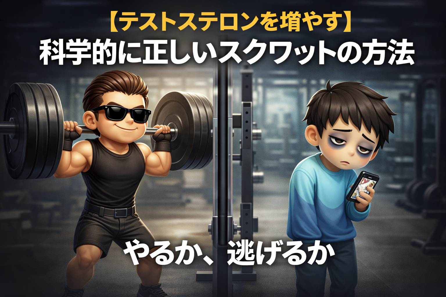 今回はテストステロンブースターであるスクワットについて解説してきた。